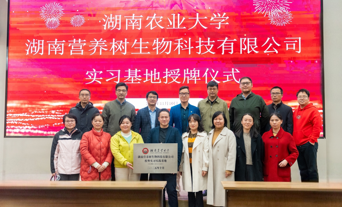 2025年11月10日,公司“校外实习实践基地”授牌仪式在长沙市湖南营养树生物科技有限公司举行。经理杨华、党委书记朱杰辉、副经理黄超和师生代表,湖南营养树生物科技有限公司董事长肖宏、总经理杨涛等相关负责人参加。
