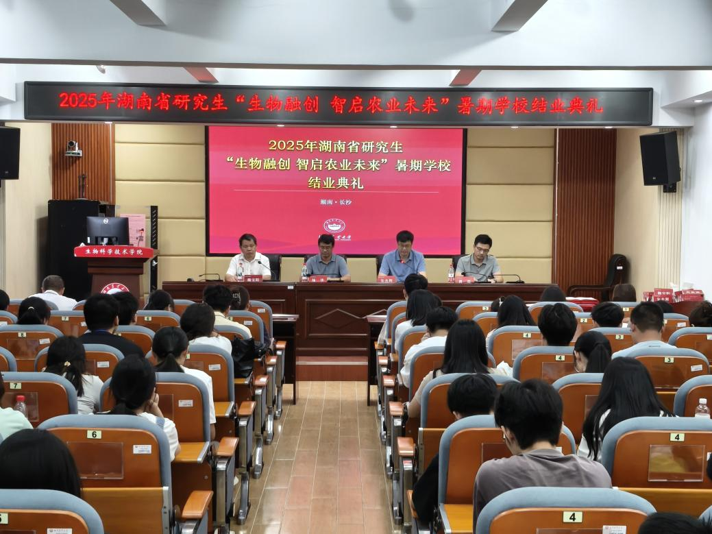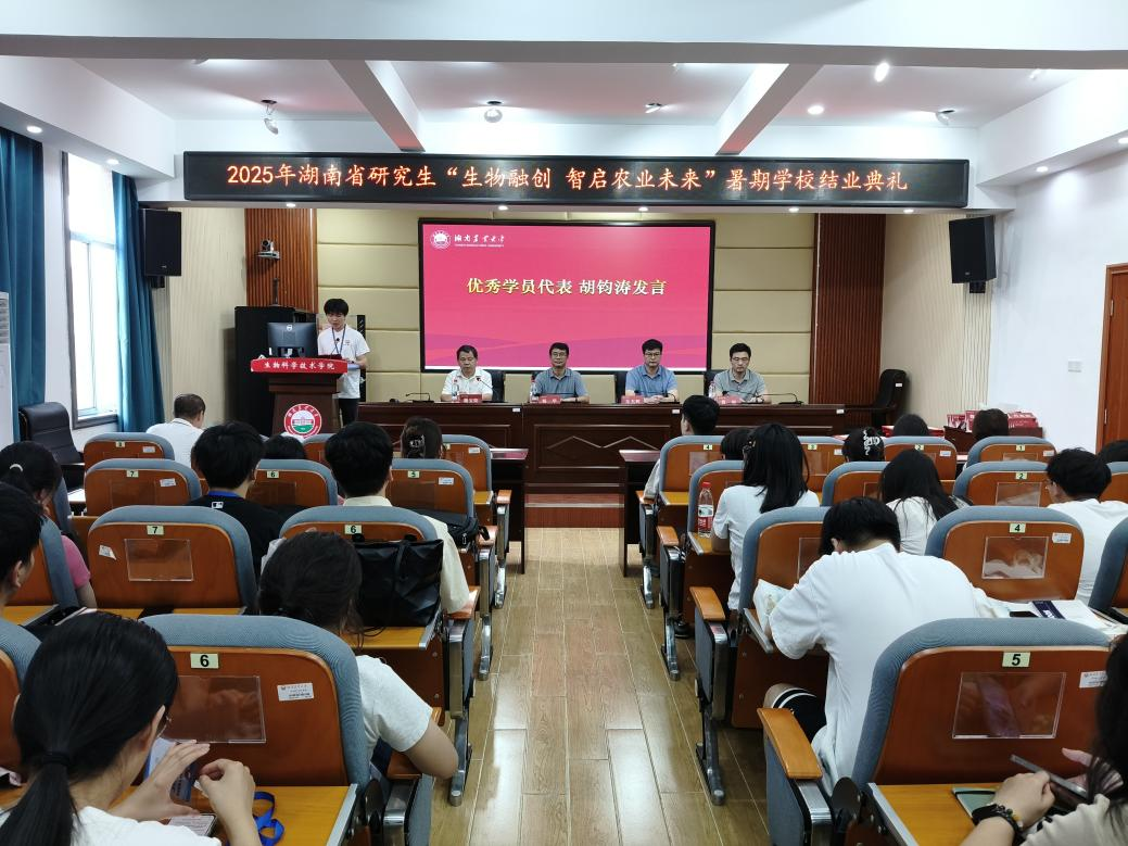 9月2日下午,由湖南省教育厅主办,beats365官方网站研究生院、beats365官方网站联合承办的2025年湖南省研究生“生物融创,智启农业未来”暑期公司结业典礼在beats365官方网站十一教南503隆重举行,beats365官方网站经理杨华、党委书记朱杰辉、副经理魏宝阳、副经理黄超、全体行政管理老师以及暑期公司全体学员共同参加。典礼由魏宝阳主持。