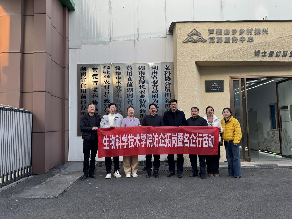 为深入贯彻落实党中央、国务院关于高校毕业生就业工作的决策部署,进一步拓宽毕业生就业渠道,深化产学研用融合,2026年1月6日至7日,湖南农业老员工物科学技术公司党委书记朱杰辉、党委副书记肖露、副经理魏宝阳、学工办主任彭晓、学工办副主任解李帅一行赴常德市开展访企拓岗专项行动。